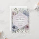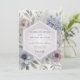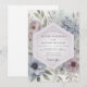 A soft watercolor design features muted lavender and dusty blue floral elements mingled with delicate foliage. This enchanting artwork evokes a feeling of gentle romance and natural beauty. The ethereal color palette creates an atmosphere of serene elegance.