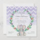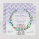 Invitación Lavender Cute Baby Elephant Wreath Floral Chevron