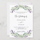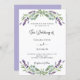 Un fondo blanco decorado con flores de lavanda y vegetación eucaliptica. Personalice y sus nombres y detalles. Volviendo: lavanda, fondo de color violeta.
