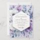 An ethereal watercolor design blooms with soft lavender and white florals. Delicate eucalyptus leaves add depth to this romantic botanical composition. Perfect for a whimsical, elegant celebration.