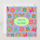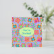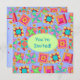 Invite a un amante de los edredones o edredones con esta colorida invitación al edredón cuadrado de personalizable. Personalizar total en la parte delantera y trasera para agregar sus propias palabras, nombres y otra información. Este original arte de tejido invita a la diversión. El arte quilt basado en el arte original cuenta con bloques de edredón de mosaico de mosaico favoritos y bloques únicos de colores vivos y dinámicos de naranja, amarillo, rosa, turquesa y verde limón sobre un fondo de lavanda perfilable para una bonita paleta de colores. Un óvalo verde limo está delante de la tarjeta para decir "Estás invitado" u otras palabras de tu elección. Muestra tu amor por el tejido con estos diseños de arte de tejido con otros productos de arte de tejido. El arte de la caldera es arte original de la diseñadora de tejidos y tejidos Phyllis Dobbs y está en una colección de tejidos de Quilting Treasures. Este arte está disponible en otros productos y en varios colores. Hay más productos disponibles en la tienda Phyllis'BusinesswithFlair. Coincidir con sellos de coordinación, sobres, pegatinas y etiquetas de dirección de retorno.
