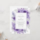This elegant design features a lush arrangement of watercolor florals in shades of lavender and violet. Detailed purple roses and delicate hydrangeas are nestled among silver-gray eucalyptus and leafy sprigs. The soft, romantic aesthetic creates a serene mood perfect for a spring or summer event.