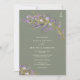 This elegant design pairs soft sage green with delicate hand painted lavender stems and subtle ivory typography for a refined, garden-inspired look. The watercolor florals sweep diagonally across the layout, creating movement while keeping the center clean and easy to read. The muted palette feels natural, calm, and effortlessly chic. Perfect for spring vineyard celebrations, countryside ceremonies, botanical garden venues, or European-inspired outdoor weddings. The initials at the top add a modern monogram touch while keeping the overall feel timeless.