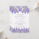 Fondo blanco decorado con flores de lavanda. Personalice y sus nombres y detalles. Atrás: agregue la URL de su sitio web boda al código QR para obtener más detalles y/o RSVP.