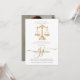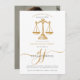 Celebrate your legal milestone in style with this elegant law school graduation party invitation featuring the iconic scales of justice in gold on the front and your full photo on the back. The classic layout pairs refined serif type with a sweeping script monogram for a timeless and professional look. Ideal for future attorneys, JD graduates, or anyone completing a legal studies degree, this design honors hard work and ambition with grace. Personalize with your name, party details, and RSVP information using the easy template. A perfect way to gather friends and family in recognition of this major achievement. Available in print, as a digital download, or both.