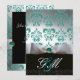 Invitación LAZO AZUL BLANCO DAMASCO NEGRO MONOGRAMA Champán