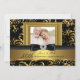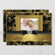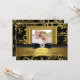 Invitación de aniversario dorada y negra. Elegante lazo de joya negra y diseño floral dorado. ¡No tienen joyas ni lazos reales!