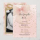 Invitación Lazo de tul rosa bonito con confeti dorado para fi
