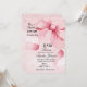 Esta invitación de la fiesta de la bebé cuenta con una delicada cinta de lazo rosa suave. Está bellamente adornada con caligrafía moderna en un color rosa suave sofisticado, creando un diseño atemporal y elegante. Esta invitación es perfecta para establecer el tono para una celebración memorable.