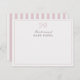 Agrega un toque personal y encantador con esta elegante tarjeta "Desde el cuarto de bebé [Nombre]". Con rayas verticales suaves de color rosa y un detalle de lazo dulce, es perfecta para regalos de bebé, notas de agradecimiento o recuerdos del cuarto del bebé. Ideal para niñas o estilos neutrales, este diseño combina el encanto clásico con la suavidad moderna. Totalmente personalizable, solo agrega el nombre de tu bebé y hazlo único.