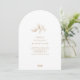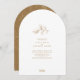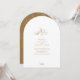 Un solo brote de hojas en el contorno del oro es el punto central para el frente de esta hermosa invitación a una boda en forma de arco. El reverso presenta un patrón de hojas coincidente en el color de fondo de su elección. El estilo de tipo de letra escrito en todos los diseños modernos y de bajo funda hacen de esto una invitación llamativa. Las numerosas opciones de diseño de este conjunto boda, desde rayas de pincel dorado hasta arreglos de hojas de otoño salpicadas de polvo de oro, le permiten mezclar y emparejar sus favoritos, manteniendo al mismo tiempo un aspecto globalmente cohesivo. Perfecto para bodas al aire libre, en el jardín y en otoño. Busque ID655 para ver el conjunto completo.