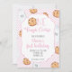 ¡Una Cookie Difícil! La fiesta de cumpleaños de la leche y las galletas de chocolate invitan en rosa con galletas de chocolate y botellas de leche y pajitas rosas. Invitación de primer cumpleaños.