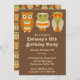 Invitación Lechuzas retro en Fiesta Personalizado marrón