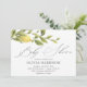 Invitación de Baby Shower con tema de limón que incluye limones acuarelas en una rama de verdes. Invitación con un ambiente vintage. Personalizar con su información para que la mami lo sea.