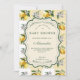 A fresh and cheerful baby shower design inspired by sunny citrus orchards. Bright lemons, delicate blossoms, and soft green leaves frame a classic scalloped centerpiece, creating a warm and inviting look. Perfect for spring and summer celebrations, this design blends natural charm with elegant typography for a timeless feel. A beautiful choice for honoring the mother-to-be in a vibrant, joyful setting.