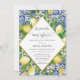 Esta tarjeta de invitación a la ducha nupcial en verano de moda incluye limones de color agua y follaje verde. Diseñado para coincidir con nuestra colección de bodas mediterráneos de limón. Personalízalo con tus detalles de forma fácil y rápida, simplemente pulsa el botón personalizar it para reorganizar y formatear el estilo y la ubicación del texto.