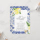 Celebre la boda con esta elegante invitación a la ducha de novias de estilo mediterráneo. Con limones de color agua, flores azules suaves y escritura con letras a mano, es perfecto para una ducha de novias de verano o jardín. Personalice el texto fácilmente para su evento especial. Ideal para una celebración de moda rústica, de inspiración italiana o con temática de limón.
