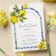 El Boho Lemon mediterráneo, donde el encanto atemporal de los azulejos y la refrescante vitalidad de los limones se unen en perfecta armonía. Esta colección es una celebración del espíritu mediterráneo, que mezcla el encanto rústico con el estilo bohemio para infundir a sus eventos un toque de soleado refinamiento. Póngase en contacto con nosotros para obtener ayuda sobre el diseño a través de Zazzle Chat o envíe un correo electrónico a stephanyanddany@gmail.com. Responderemos en 12 horas.