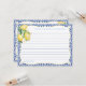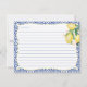 Consejos Para el diseño de tarjetas de Mamá en Paz adornado con limones acuarelas, hojas verdes brillantes y acentos de texto blanco azul vintage para coincidir con los diseños de la invitación a la ducha de bebé en el mismo color. Este diseño también funcionaría para una tarjeta de consejos/deseos para una novia.