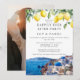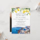 Esta elegante invitación de boda para una fiesta de felices para siempre, con limones de acuarela y una escena de Santorini, Grecia, se puede personalizar con su información en tipografía chic y una foto especial en el reverso. Diseñado por Thisisnotme