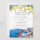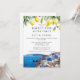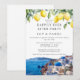 Esta elegante invitación de boda de fiesta feliz para siempre, con limones de acuarela y una escena de Santorini, Grecia, se puede personalizar con su información en tipografía chic. Diseñado por Thisisnotme