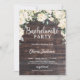 Invitación Leña rústica rosas blancas hortensias bachelorette