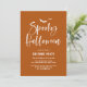 Invitar a los invitados a una celebración desconcertante con esta invitación de la fiesta de Halloween, que presenta "Halloween con fantasía" en escritura con letras blancas sobre un fondo naranja quemado. El diseño moderno lo convierte en un lugar ideal para fiestas de disfraces, celebraciones de cumpleaños de otoño o noches de juegos espeluznantes. Los campos de personalizable le permiten introducir los detalles de su fiesta con facilidad. El contraste audaz de las letras blancas y de los tonos cálidos del naranja garantiza que la invitación se destaque. Perfecto tanto para uso impreso como digital.