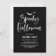 Letras espeluznantes para el cepillo de Halloween | Invitación a la fiesta de disfraces. Invite a su familia y amigos a su fiesta de Halloween con esta invitación a la fiesta de personalizable en blanco y negro. Cuenta con letras de pincel blancas, murciélagos y fondo de rayas. Hay otros colores disponibles.