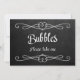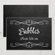 Sencillo y elegante letrero de boda estilo pizarra "Burbujas por favor tome uno".