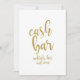 Un letrero de boda elegante y de vanguardia, presenta el texto "Barra de efectivo, cócteles, cerveza y vino" en una fuente de letra extrovertida, la textura brillante añade un toque festivo y glamuroso. El color de fondo se puede personalizar según tus necesidades y preferencias, por favor contáctame si tienes alguna solicitud especial.