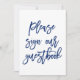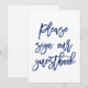 Letrero moderno y chic que dice "Por favor firme nuestro libro de invitados" en azul marino