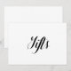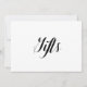 Estilo de caligrafía simple y elegante en negro y blanco para letrero de "Regalos" de boda.