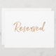 Invitación Letrero de Boda "Reservado" Rosa Dorada | Elegante
