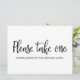 Invitación Letrero de Recuerdos de Boda "Tomen Uno"