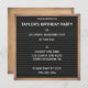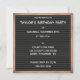 Esta divertida invitación con forma cuadrada tiene el aspecto de un clásico letrero de estilo pizarra de letras en negro enmarcado en una moldura de madera marrón. Todo el texto en letras blancas está listo para tu toque personalizado para que puedas crear la invitación perfecta para cumpleaños, aniversarios o fiestas para cualquier ocasión.