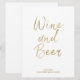 Invitación Letrero de Vino y Cerveza | Dorado Elegante con Le