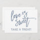 Letrero de Buffet de Caramelos "Love is Sweet" en Brush Script (Azul Polvoriento): Decora la barra de caramelos / mesa de buffet de la boda con este moderno letrero de caligrafía de pincel. Está configurado en azul polvoriento / gris azulado. En realidad, es un poco más gris que azul, pero puedes cambiar el color en tu extremo simplemente cambiando el color de fondo.