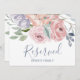 Este letrero "reservado" con florales rosa polvo es perfecto para una boda de primavera o verano. La tarjeta es de doble cara (imprime en ambos lados). El diseño floral romántico presenta flores de color púrpura lila, rosa suave y melocotón dispuestas en un hermoso ramo pastel suave. Utilice estas tarjetas para reservar sillas o mesas en su ceremonia de boda, recepción o cualquier evento.