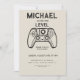 Celebrate a gamer’s big Level 10 milestone with this fun and modern video game birthday invitation. Designed with a simple beige background, this invitation features a game console placed at the center, giving it a clean and stylish look. Perfect for kids who love gaming, the minimalist design keeps the focus on the excitement of leveling up to 10. Ideal for video game themed birthday parties, this invitation is easy to read, trendy, and playful without being too busy.
