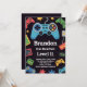 Level up the fun with this cool kids gaming birthday party invitation! Featuring a watercolor video game controller and bold modern lettering, this design is perfect for gamers who love to play and celebrate. Easily personalize it with your child’s name, age, party date, and details to create an invitation that’s ready to power up the excitement. Great for boys or girls who enjoy console games, online fun, or arcade-style parties!