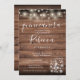 Una rústica invitación de 15 años de Quinceañera con luces de cuerdas de bonito y jarras de albañil con elegante tipografía de escritura, sobre un fondo rústico de madera. Diseñado por Thisisnotme©