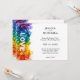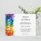 Acepta el espíritu de tu historia de amor con esta vibrante y auténtica invitación a la boda. El diseño, perfecto para una disposición horizontal, es una celebración de orgullo y unidad, con una cascada de pinceles inducidos por el arcoiris en la parte superior. La palabra "AMOR" se centra audazmente en letras blancas nítidas, sirviendo como faro de tu alegría. Debajo de la obra de arte, los nombres se escriben elegantemente. La parte delantera de la tarjeta está pensada para proporcionar a sus huéspedes todos los detalles esenciales. La fecha de su boda se muestra de forma destacada, asegurándose de que sea una fecha que no olvidarán. Bajo la fecha, puedes personalizar la tarjeta con toda la información que necesites, incluyendo la hora del día, el encantador lugar y una nota sobre la alegre recepción que te espera. El reverso de la invitación continúa con esta poesía visual. Una versión más pequeña de la obra se encuentra en la esquina, lo que deja espacio suficiente para un toque personal. Este espacio es perfecto para añadir una foto favorita de los dos, junto con un mensaje sincero, una cita significativa o una nota especial a sus invitados. Esta invitación es más que sólo una tarjeta; es una hermosa representación de tu amor, diseñada para establecer el tono perfecto para tu día especial.