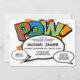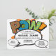 Un cómic divertido, fresco y moderno inspirado en una invitación de bautizo que pone el toque de emoción en la celebración de tu superhéroe. El reverso presenta una burbuja de diálogo coincidente para detalles adicionales del evento y la dirección. Diseñado por Thisisnotme©