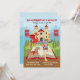 Celebre el cumpleaños mágico de su hijo con esta colorida invitación. Cuenta con un caballero y su hermoso caballo, un dragón y un castillo medieval en una colina. Más importante aún, hay un libro de cuentos de aventuras probablemente lleno de historias medievales sobre caballeros y dragones. Esta invitación de cumpleaños para niños se personaliza fácilmente para su evento agregando sus detalles. En la parte delantera, en el fondo, hay un paisaje azul suave con una silueta de castillo y un escudo medieval con un dragón y con espadas. ¡Es ideal para cumpleaños infantiles con temas de caballeros y dragones, cuentos de hadas y libros!