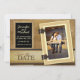 Papeles de estampado en tonos marrones, con una cinta de pizarra y pergamino antiguo, con una cartera de retratos vintage para enmarcar la foto de compromiso. Personalizar con sus propios detalles.