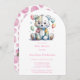 Esta ilustración contiene un osito de peluche lindo y caprichoso con un parchado floral de acuarela cosido, con un globo parchado sobre un fondo blanco simple. Las invitaciones y suministros para fiestas coincidentes están disponibles en este conjunto de colección.