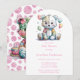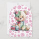 Esta ilustración contiene un osito de peluche lindo y caprichoso con un patchwork de flores cosidas en acuarela, con un globo de patchwork sobre un fondo blanco simple. Las invitaciones y suministros para fiestas coincidentes están disponibles en este conjunto de colección.