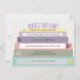 Una invitación para una ducha bebé con el tema de traer un libro para la biblioteca de niñas. Diseño original de Night Owl's Menagerie, 2019.