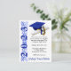 Invitación a graduación, tema de Cap & Diploma, con obras de arte "Year", en Royal Blue & Gold. La parte de atrás de la invitación incluye el nombre del graduado, puede ser personalizado con sus propias imágenes, obras de arte, etc.