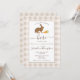 Celebra la llegada de un pequeño con esta dulce invitación de baby shower que presenta la ilustración de Destei de un conejo liebre marrón junto con algunas zanahoritas y un fondo de cuadros beige. El titular dice “Un pequeño y adorable liebre está casi aquí”. Perfecto para una celebración de baby shower de Pascua, rústica, bosque o primavera.